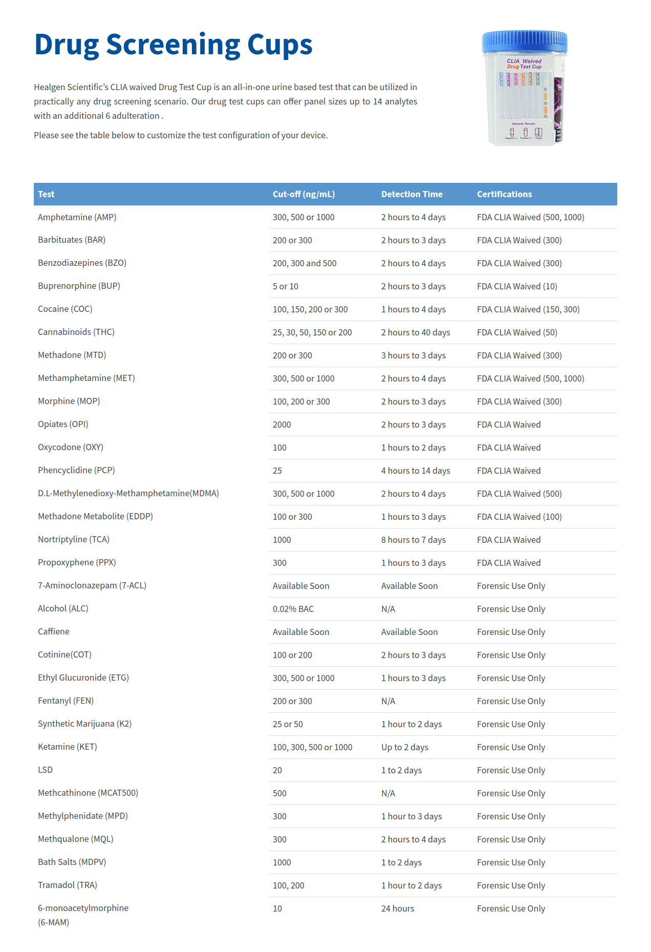 Drug Screening Cups