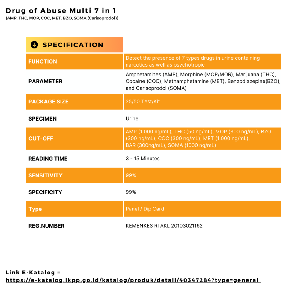 Multi Drug Of Abuse Multi 7 (MET, COC, MOP (Opiat), AMP, BZO, THC, Carisoprodol (SOMA))