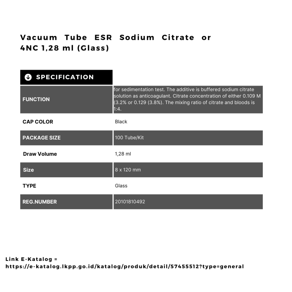 Vacuum Tube ESR Sodium Citrate or 4NC 1,28 ml (Glass)