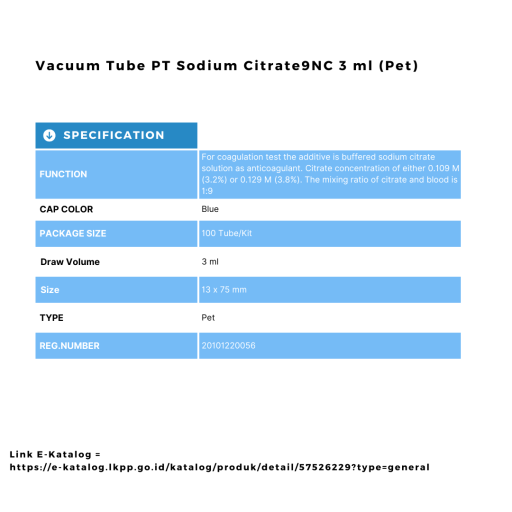 Vacuum Tube PT Sodium Citrate9NC 3 ml (Pet)